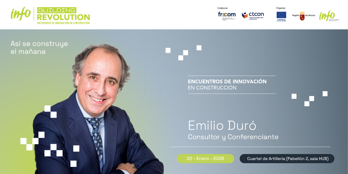 El Instituto de Fomento de la Región de Murcia (INFO) organiza este acto en colaboración con la Federación Regional de Empresarios de la Construcción (FRECOM) y el Centro Tecnológico de la Construcción (CTCON).